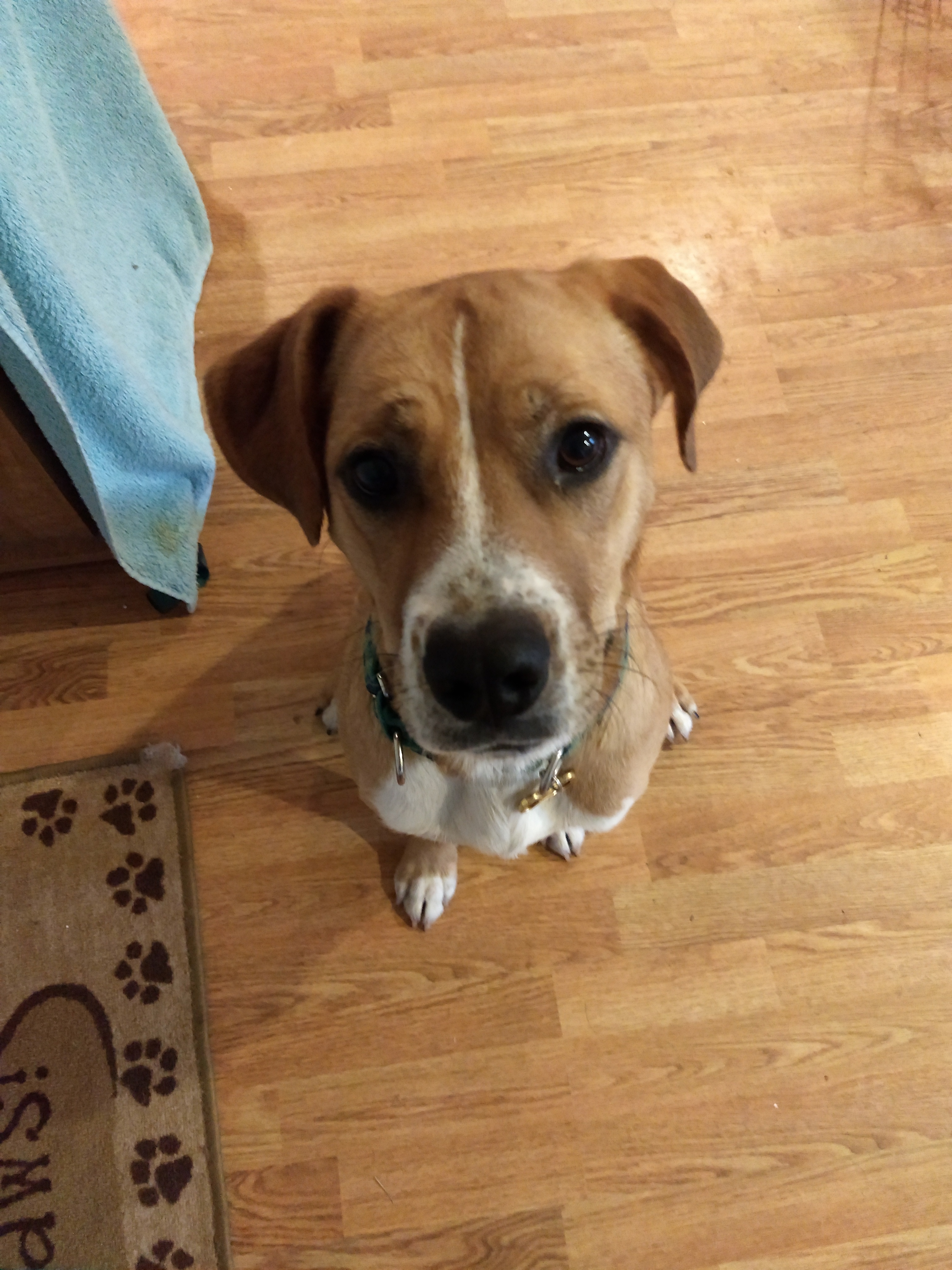 Rescued from kill shelter/animal control in WV. Around 1-1.5 year old male. Red coloring with a white chest, belly, feet/toes, muzzle and stripe between the eyes.