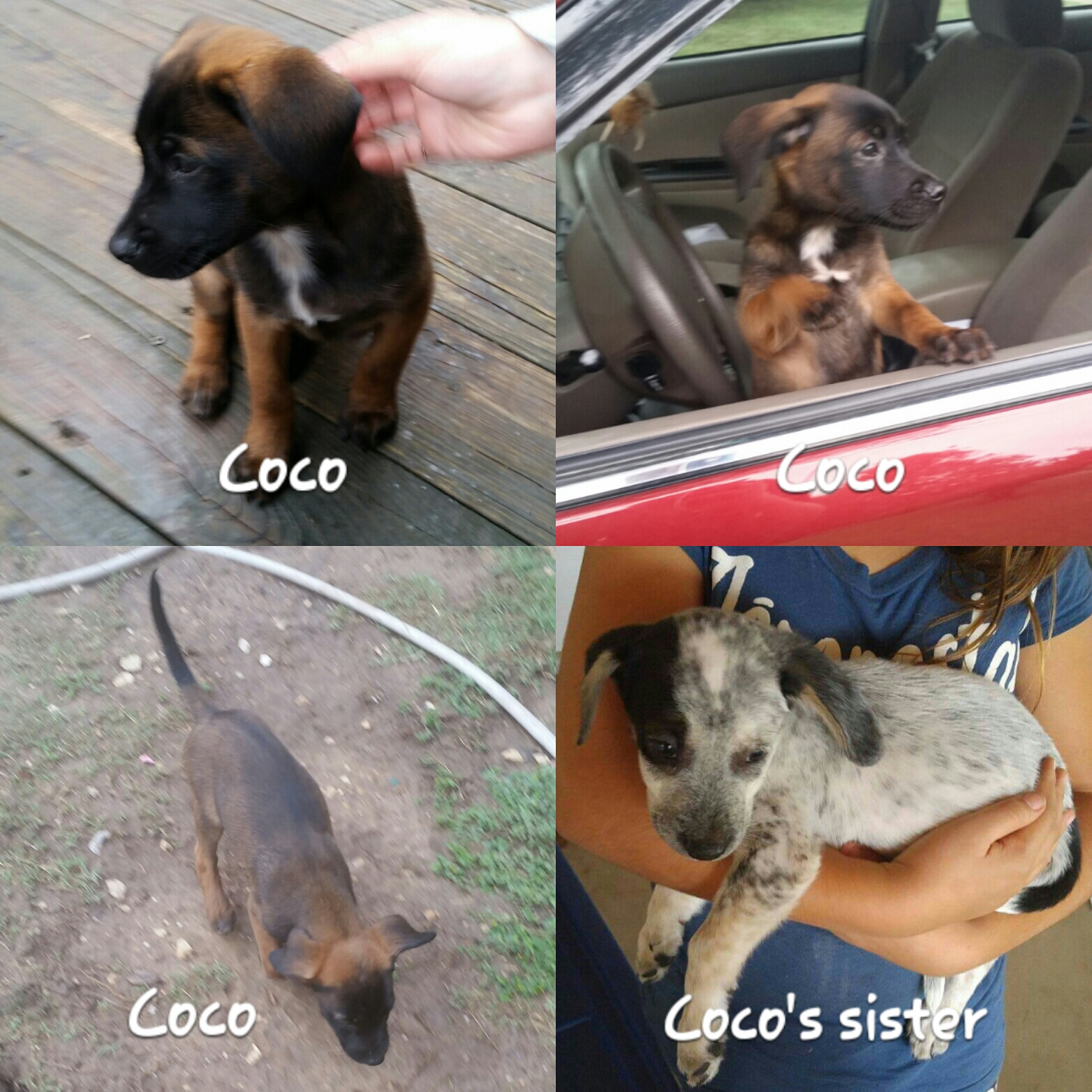 Coco is a very sweet, cuddly puppy. She was dumped at a friends house with 5 siblings. She was the only one that was a solid color, her siblings were all spotted.