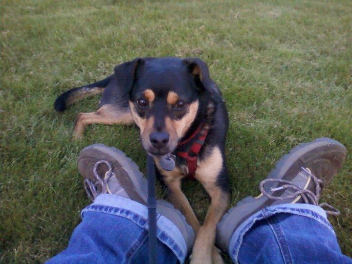 This is Cowboy he is a 25 lb full grown 3 year old. I got him at the SPCA when he was 2 months old but am unsure what breed he really is. His placard said terrier but thats very vague. Alot of people say he looks like a miniature version of a german shepherd, probobly because of his thick light colored undercoat he has. I think He's a min pin mix, but altogether whats important most is hes our cowboy. He is a smart little goober. He always goes with us everywhere from cali to oregon, the beach, and his favorite the mountains...he loves running and sniffing in the trees. He also absolutly LOVES snow. One of his best passtimes is when we go to the mountains and let him run beside us through all the logging roads and trails. He can run forever it seems and he LOVES it. He is our baby boy for life!