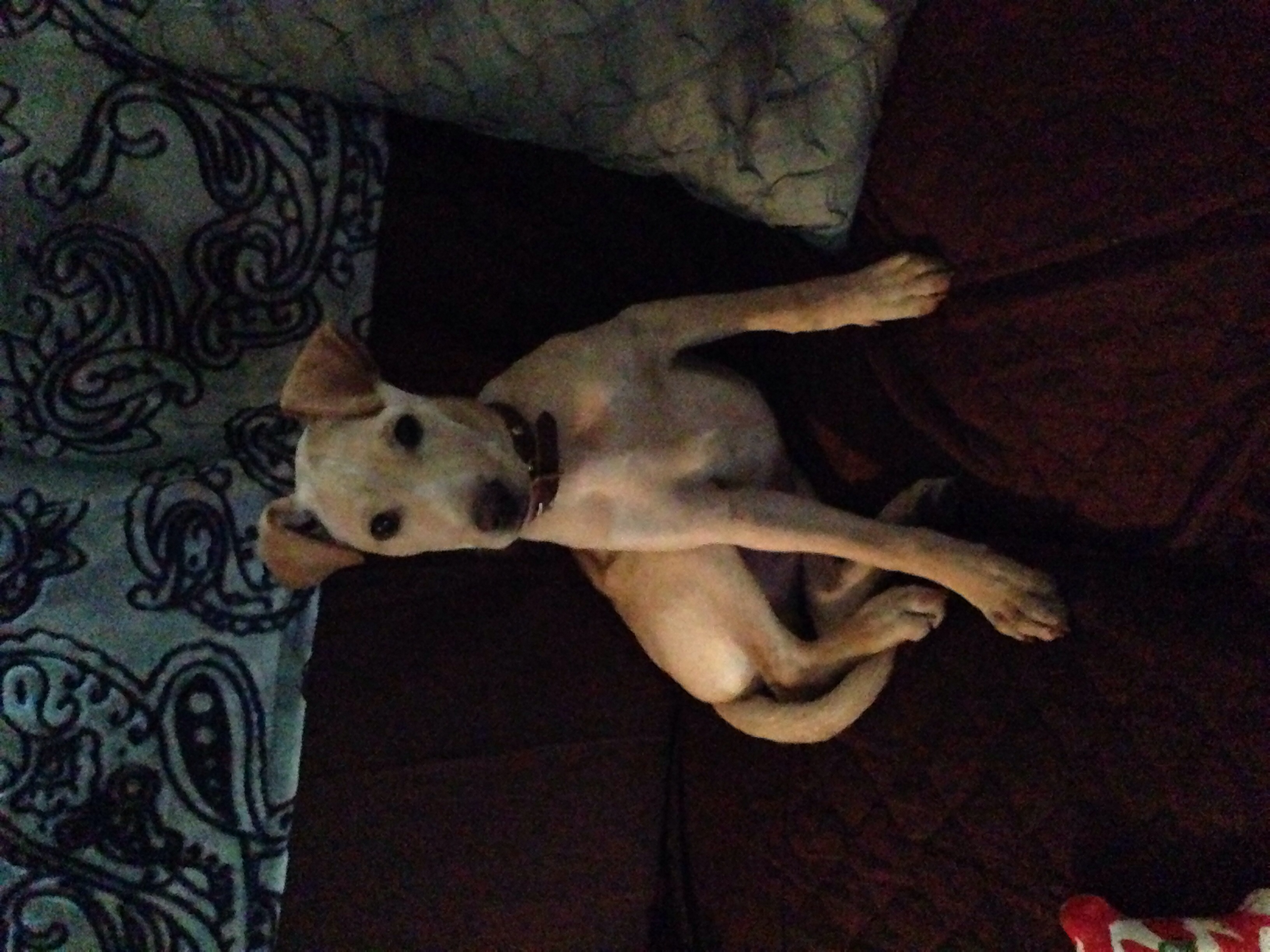 Finn is about 12 weeks old rescue. We were told he was a Lab Shepard mix but I'm questionable about that. When he sleeps he has lab ears. When he's awake they pop right up. Good boy apart from his leash biting habit....