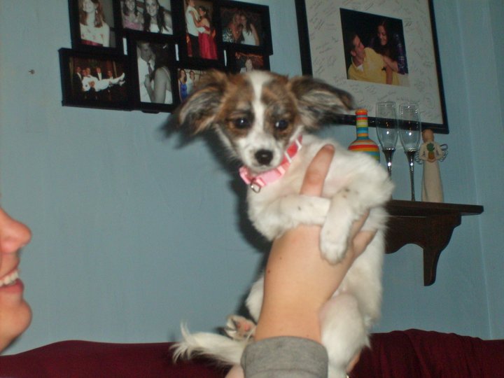 Indy is incredibly smart! She knows sit, down, she can hide her face, and crawl. She's been working on roll over and paw :) She will only be about 6-10lbs full grown.