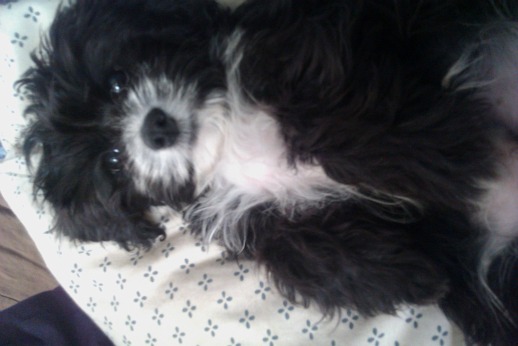 This little furball is a rude little dog. He's used to having food shared with him, so if you don't share, he'll bark his anger at you. He Loves to make the other dogs growl just to hear the sound and he squeeks the toys repetitivly.