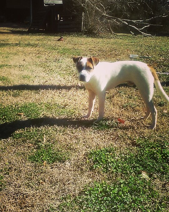 I recently got this sweet boy! I was told he is 6 months old and around 29 pounds. He's very sweet, affectionate, hyper and sometimes doesn't mind. Once he's spies the cat he is focused and will try to jump the fence. Also one leg will go up and tail will get straight. Was told Mom is a beagle, but I don't think so.