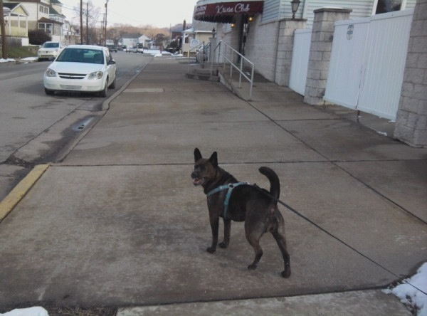 Paige is always stirring up trouble, but with that face I can't stay mad for more than a millisecond. She's brindle brown with black tips and about 30-35 lbs. She's about five years old, and we adopted her right before Halloween 2012. She's already everyone's favorite family member.