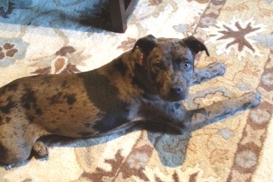 Adopted at the shelter as a Catahoula mix. Has Catahoula traits (webbed feet, coloring, herding instinct). What else is she mixed with?