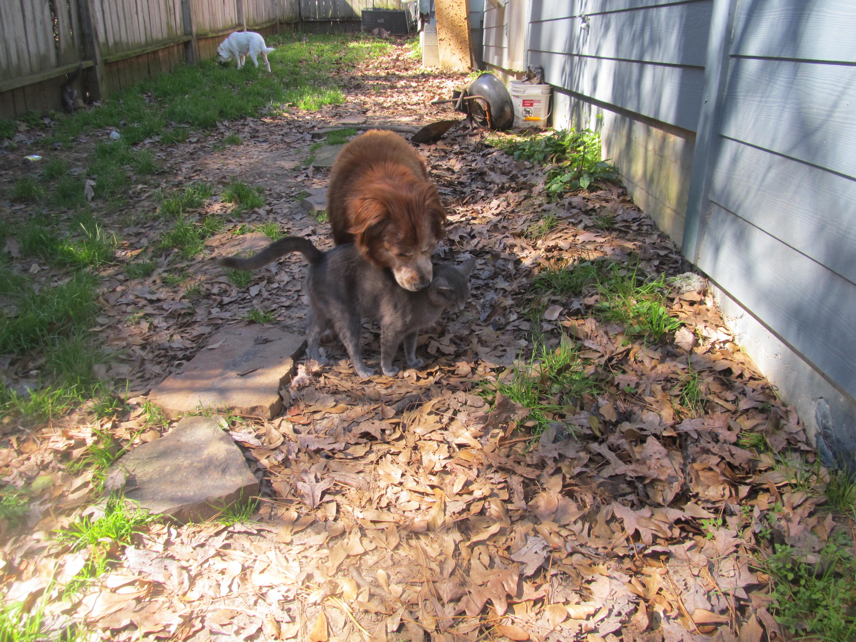 Snickers is a large red dog. he is a gentle giant as you can see in the picture.He LOVES cats.