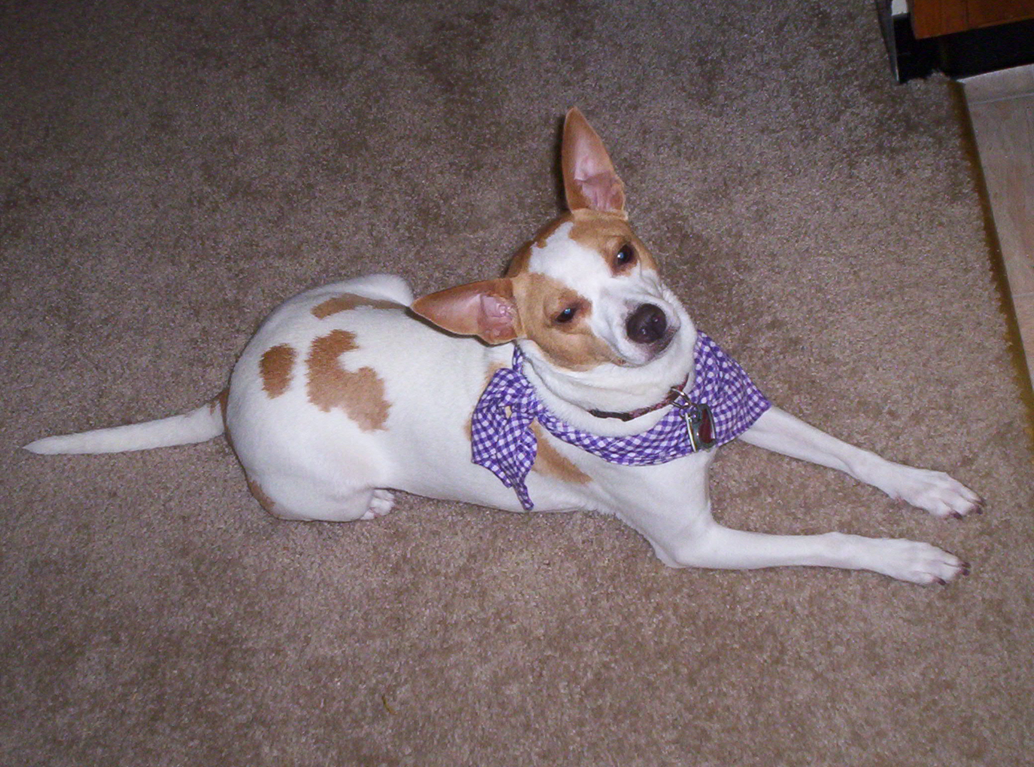18lbs, loves to jump staight up and sleep under the covers. Really wants to catch every bird and squirrel she sees. :)