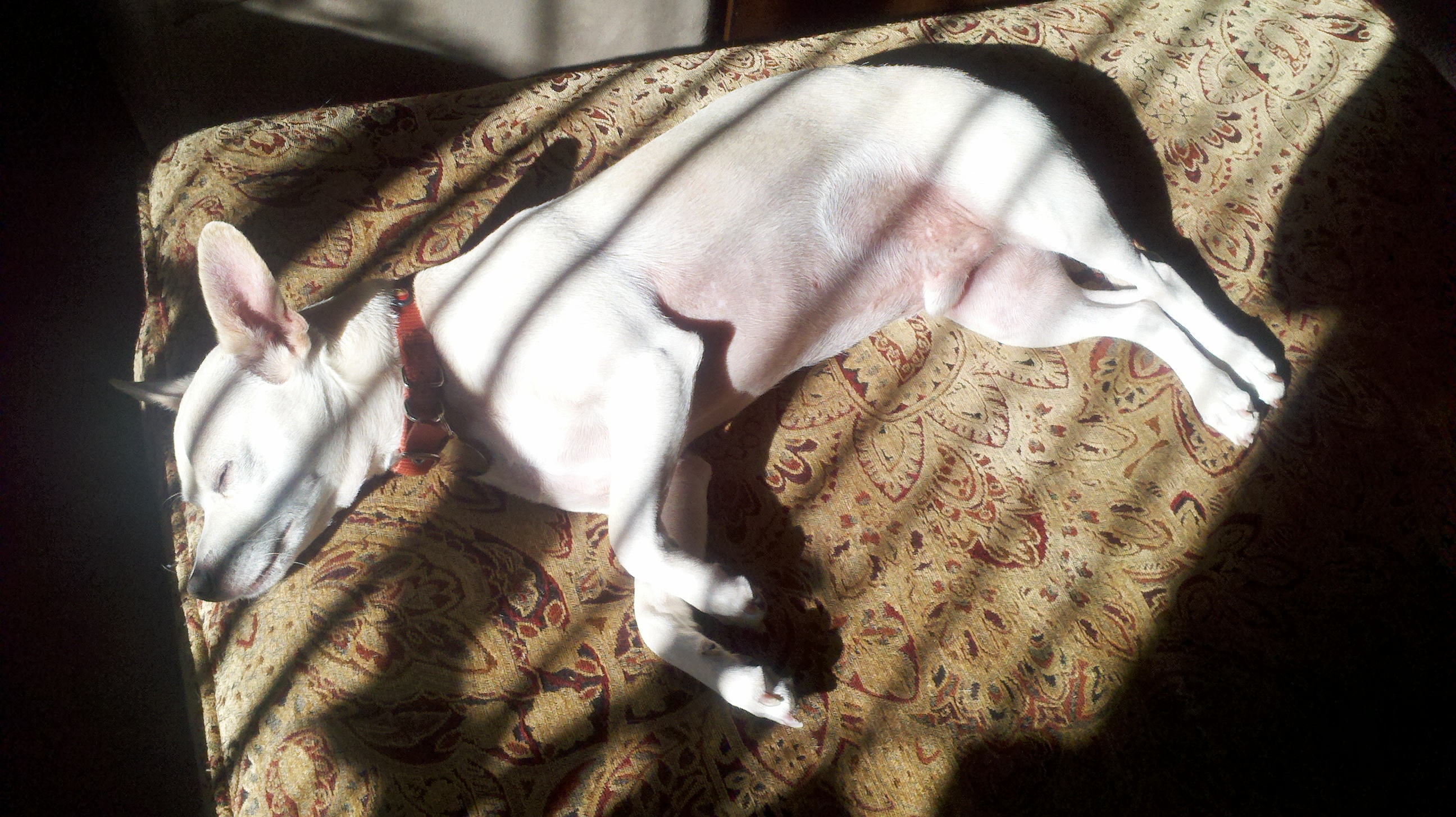I found Yogi shivering in a shelter 3 years ago in December. He now spends his days worshipping the sun and getting belly rubs. After a bath he initiates his spin cycle: running around the apartment until he is tired and a little dryer. He loves playing keep away but hasn't yet mastered fetch.